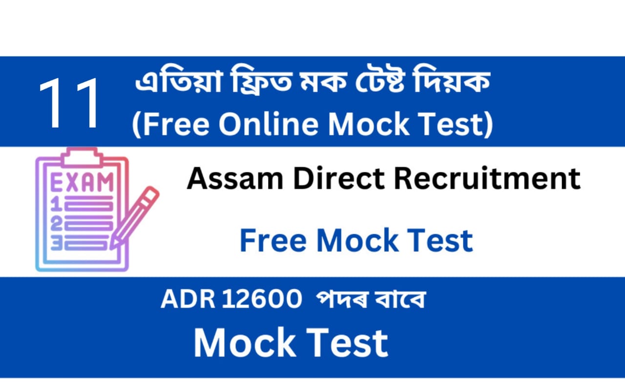 Assam Direct Recruitment Mock Test 11- Free online Mock Test 6 for ADR Recruitment, Free Online Mock Assam Direct Recruitment (ADR) part – 11Good News for all candidates who now you can try free online Mock Test for upcoming Written Test for Govt job Assam, Free Mock Test, Mock Test are a great way to assess your knowledge. In this article we will discuss the free mock tests for Government job vacancies and these Online Free Mock tests help you identify your strengths and weaknesses, understand the exam pattern. Note: This mock test is published by AssamJobupdates.com only, there are no relation with the Board or concerned department regarding this test. and latest mock test visits our website Assamjobupdates.com