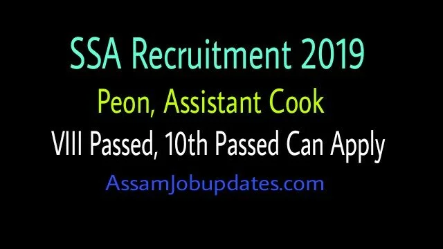 SSA Recruitment 2019– Applications are invited from eligible candidates for the post of Peon cum Metron and Assistant Cook in the Kastuba Gandhi Balika Vidyalaya ( KGVB,Residential School for Girls), Dekiajuli Borsola and Rangapara of Sonitpur Districts)